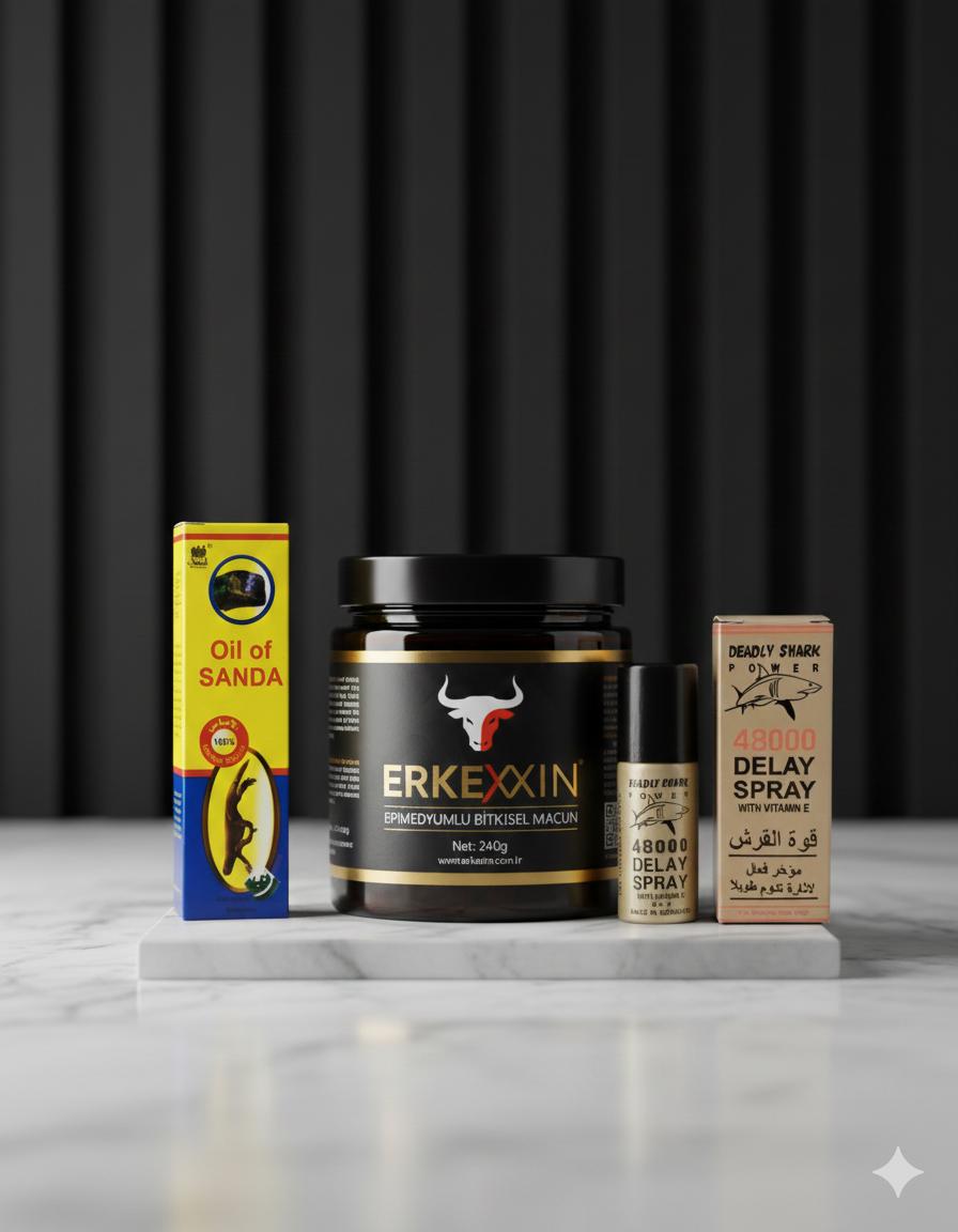 Erkexin Men’s Power Full Bundle | Epimedyumlu Bitkisel Macun + Sanda Oil + Delay Spray | مجموعة القوة الرجالية الكاملة